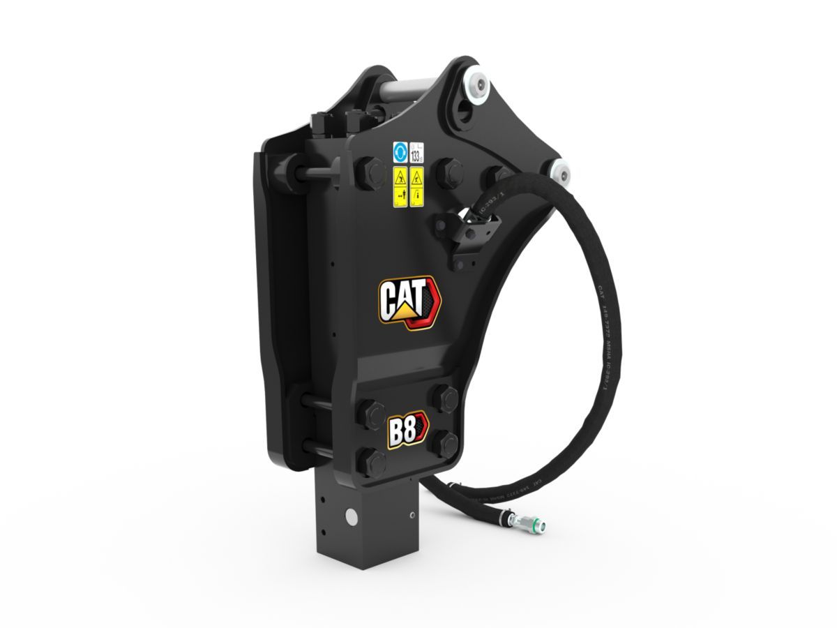 Kompakt Yapıda Yüksek Performans Cat® B8 Side Mount Kırıcı, 364 kg çalışma ağırlığı ve 1150 J darbe enerjisi ile 415–444 sınıfı kazıcı yükleyiciler için güçlü ve dengeli bir çözüm sunar. 75 mm takım mili çapı ve 400–800 bpm etki sıklığı, sert zeminlerde etkin kırma performansı sağlarken; 50–90 l/dk optimal hidrolik akış ve 11.749 kPa minimum çalışma basıncı, makine-hidrolik uyumunu optimize eder.